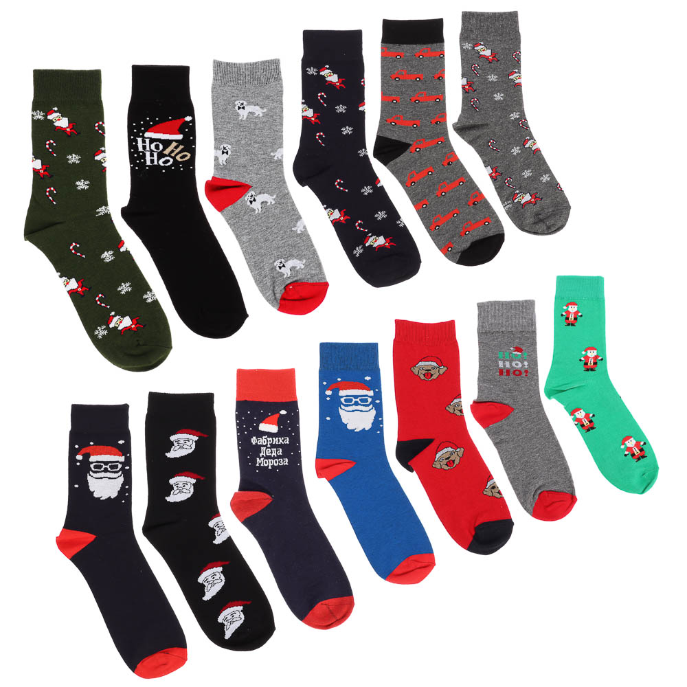 Носки мужские с новогодней тематикой, 78% хлопок, 20% спандекс, 2% латекс, р. 40-44