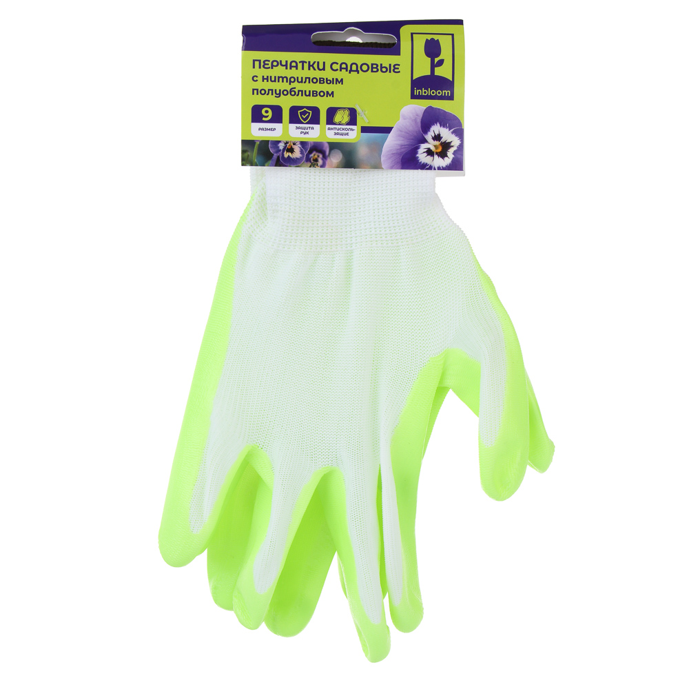 INBLOOM Перчатки садовые с нитриловым полуобливом, полиэстер, р.9, 25см, 45г