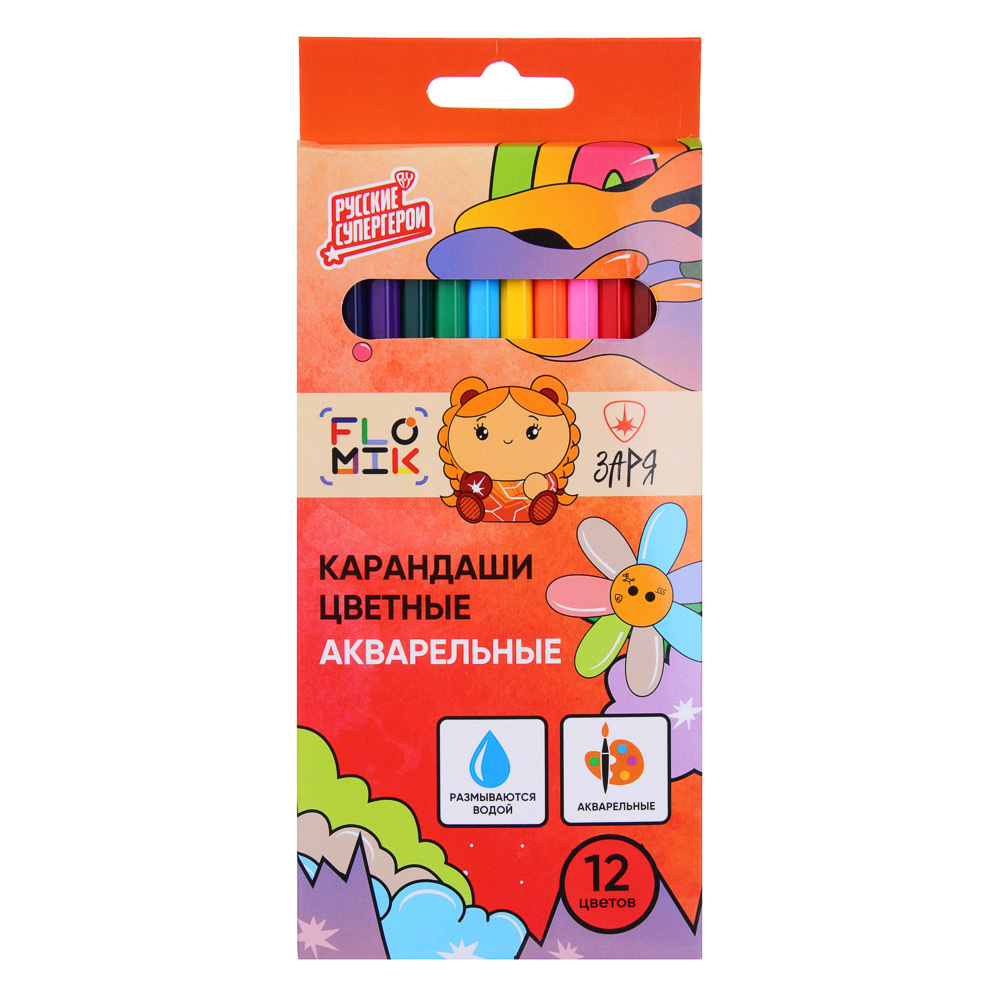BY FLOMIK Карандаши цветные акварельные, 12 цветов, грифель размывается водой, дерево, в карт.кор.