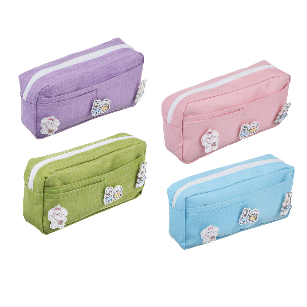 Пенал прямоугольный, 22х11х5см, 1 отд., накладной карман, значки, п/э под ткань, 4 цвета, пакет