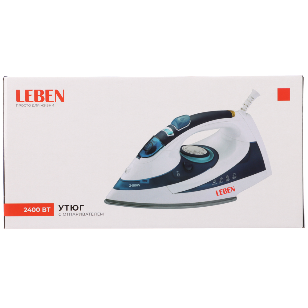 LEBEN Утюг с отпаривателем 2400 Вт, подошва - керамическое покрытие, синий