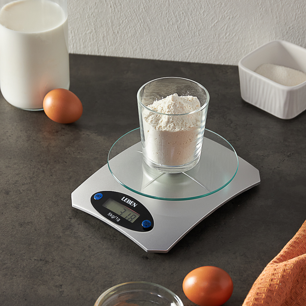Кухонные весы LEBEN с лаконичным серебристым дизайном - отличный способ точно узнать вес продуктов питания и ингредиентов, используемых при приготовлении того или иного блюда. Модель электронного типа обеспечит точные результаты взвешивания с погрешностью около одного грамма. Конструкция устройства предусматривает выполненную из стекла платформу, покоящуюся на пластиковом корпусе. Весы выдерживают нагрузку до 5 кг, в случае перегрузки на дисплей выводится специальная индикация.