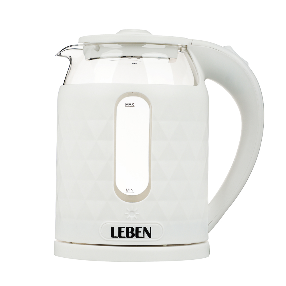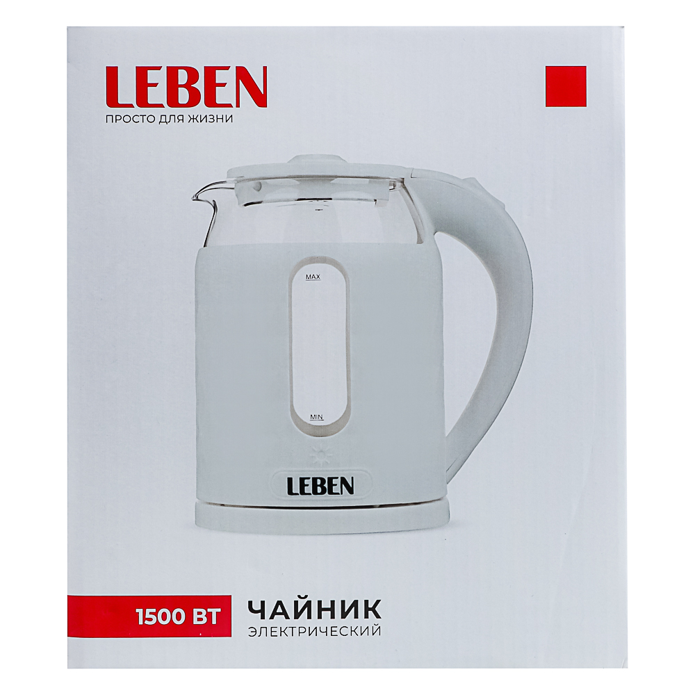 LEBEN Чайник электрический, 1,5 л, 1500Вт, стекло, пластик, 220-240В