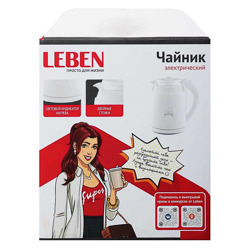 Электрический чайник Leben 1500 Вт — это современные технологии и высокое качество по доступной цене. Внутренняя часть изготовлена из закаленного стекла, внешняя — из современного термостойкого пластика. Электрический чайник Leben вскипятит воду за считанные минуты, после чего автоматически отключится. Ручка из нескользящего материала надежно «сидит» в руке и не норовит вырваться. Длинный носик направляет кипяток прямо в чашку — столешница и посуда защищены от горячей жидкости. Объем 1,5 л — подойдет для семьи из 2-3 человек. Электрический чайник Leben прослужит вам долгие годы и украсит интерьер любой кухни.