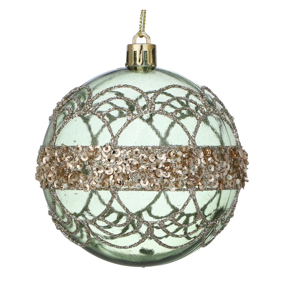 СНОУ БУМ Шар пластик 8 см, зеленый, прозрачный с узором