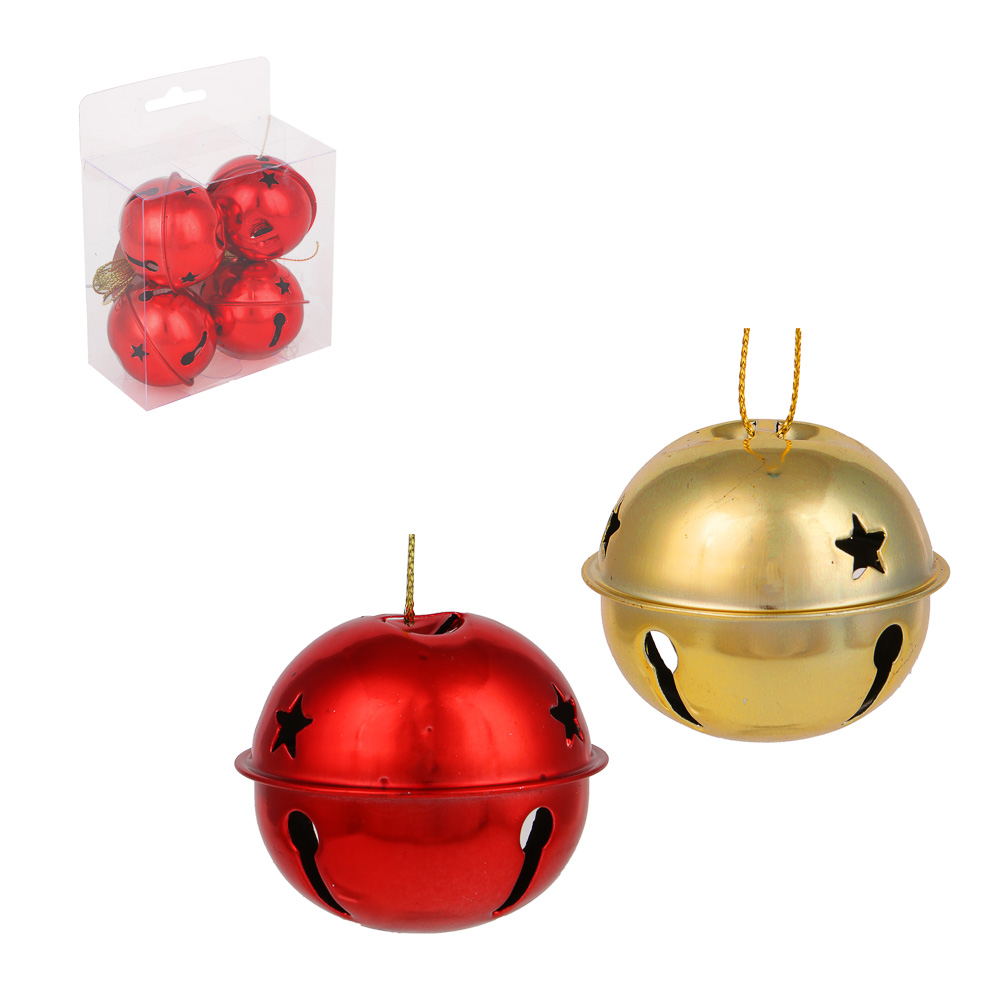 СНОУ БУМ Набор колокольчиков, 4 шт, металл, 2 цвета (красный, золото), 5 см