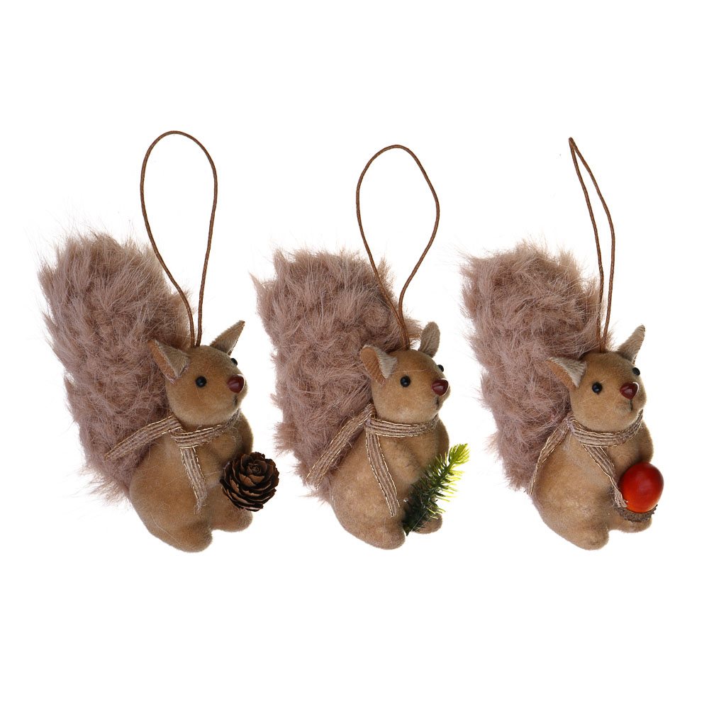 СНОУ БУМ Сувенир елочный Белка 10 см, полиэстер, коричневый, 3 вида