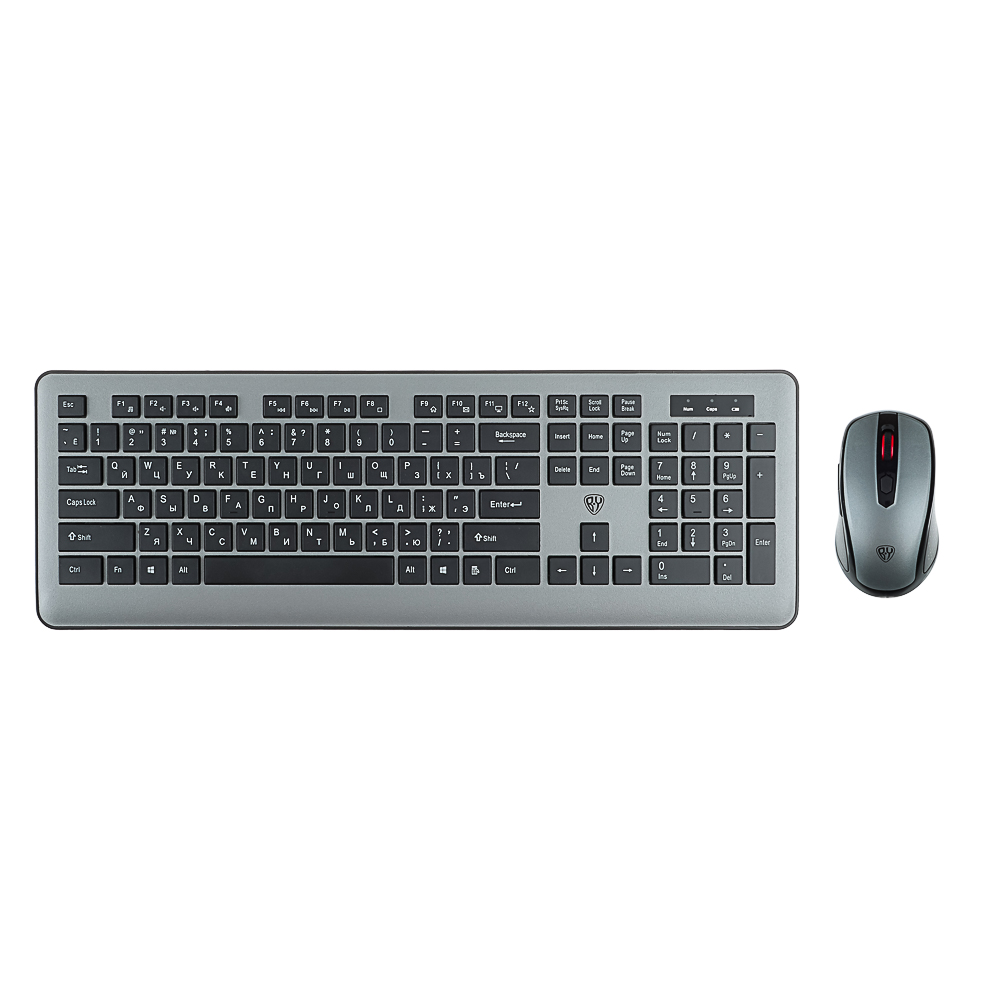 Стильный серебристый комплект создан для тех, кто ценит комфорт и функциональность в повседневной работе за компьютером. Полноразмерная мембранная клавиатура с 104 клавишами обеспечивает удобный ввод текста благодаря бесшумным клавишам и классической раскладке QWERTY/ЙЦУКЕН. Встроенные мультимедийные сочетания клавиш и выдвижные ножки позволяют настроить рабочее пространство под индивидуальные предпочтения. Эргономичная беспроводная мышь с оптическим сенсором 1200 DPI гарантирует плавное и точное позиционирование курсора. Шестипозиционное колесо прокрутки и специальные кнопки копирования/вставки значительно ускоряют работу с документами и веб-страницами.
