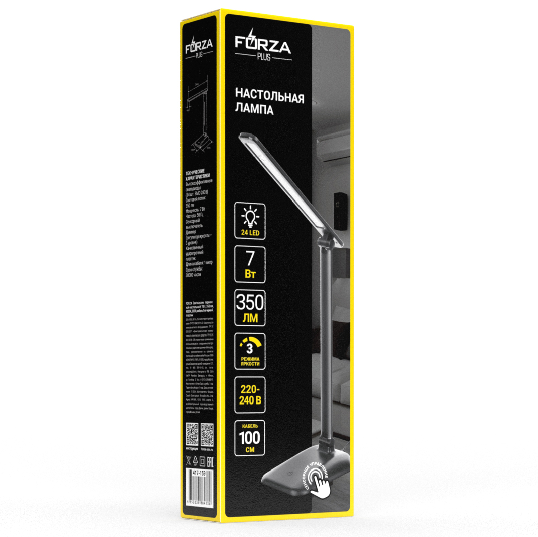 FORZA Светильник переносной настольный, 7 Вт, 350 Лм, 4000K, 220В, кабель 1 м, черный, пластик