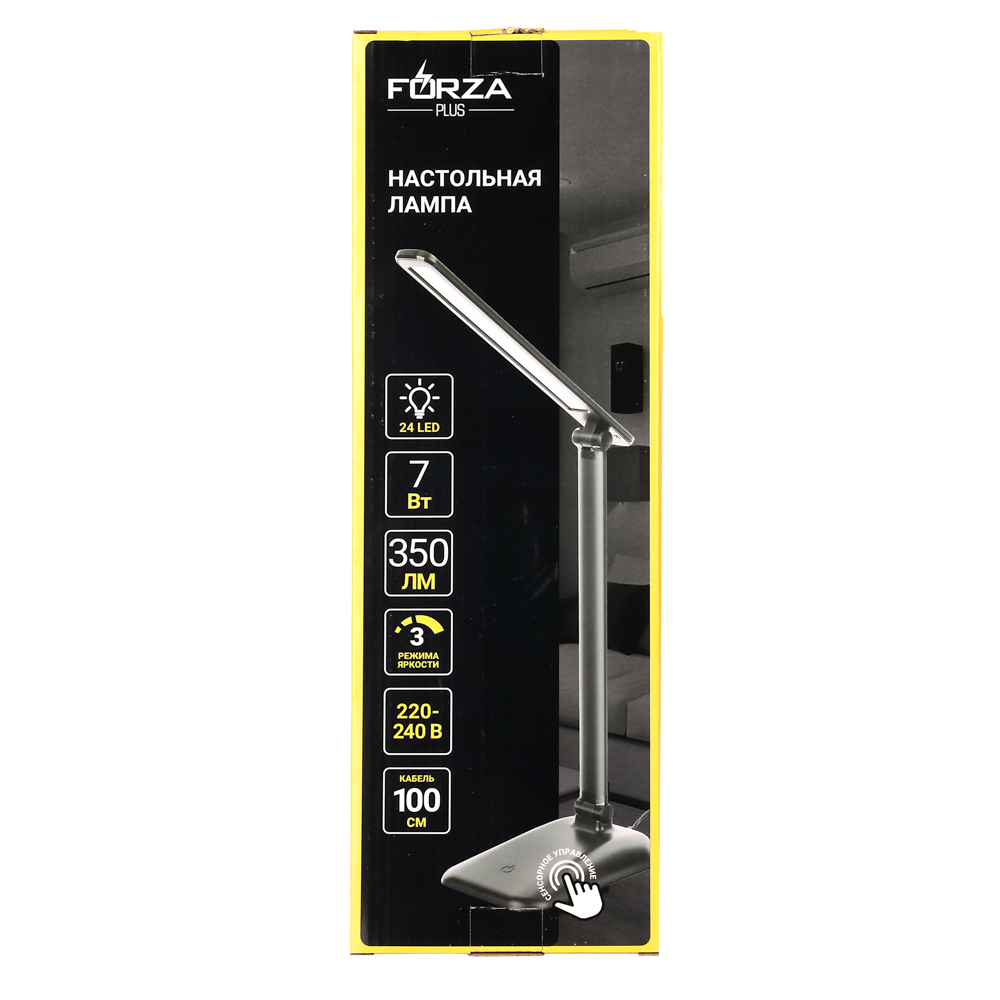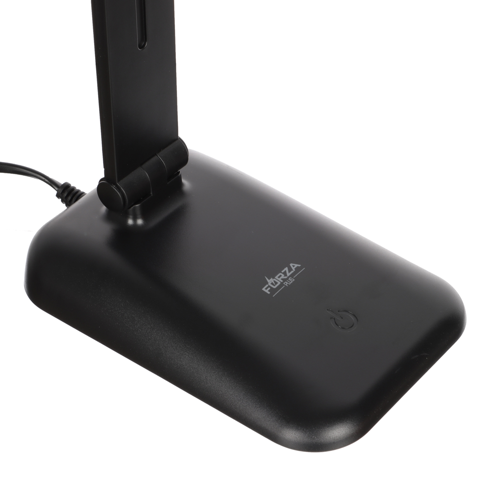 Светильник переносной настольный FORZA — это современный и функциональный источник света, который идеально подходит для работы, чтения или создания уютной атмосферы в доме или офисе. Светильник выполнен в стильном черном цвете и изготовлен из высококачественного пластика, что делает его лёгким, прочным и долговечным. Он оснащён 24 светодиодами (LED), которые обеспечивают яркость 350 Лм и комфортную цветовую температуру 4000K, что соответствует нейтральному белому свету, идеальному для концентрации и работы. Светильник поддерживает три режима работы, позволяя выбрать оптимальный уровень освещения в зависимости от ваших потребностей. Угол наклона светильника регулируется, что обеспечивает гибкость в направлении света. Управление осуществляется с помощью сенсорной панели, что добавляет удобства в использовании.