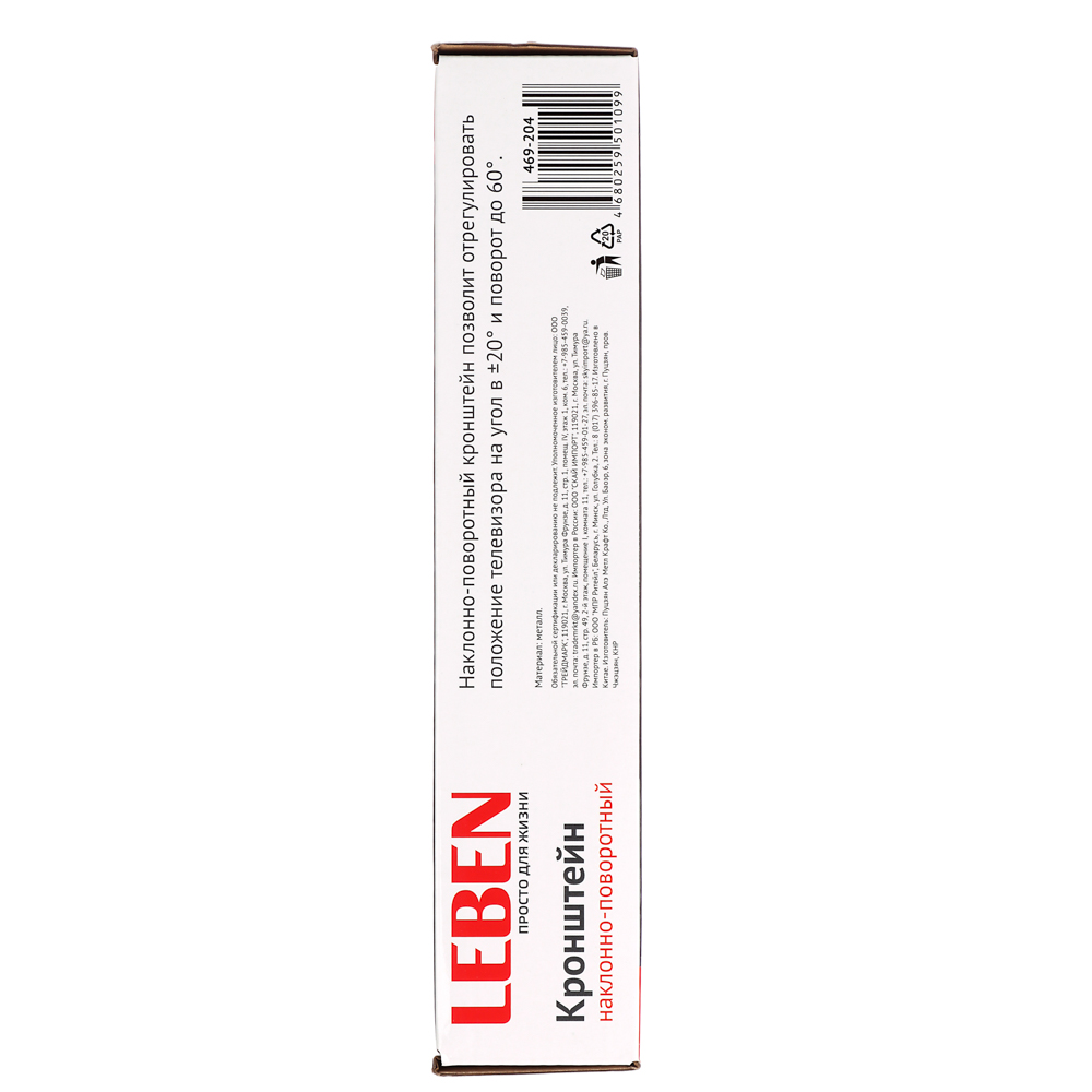 Погрузитесь в мир кино и развлечений с кронштейном для ТВ от LEBEN. Этот наклонно-поворотный кронштейн предлагает идеальное решение для вашего телевизора размером от 14 до 42 дюймов, с весом до 30 кг. Благодаря своей универсальной конструкции с креплением от 100x100 до 200x200 мм, вы можете установить свой ТВ и наслаждаться просмотром из любого угла комнаты. Изготовленный из прочного металла, этот кронштейн обеспечивает надежную и безопасную поддержку вашего ТВ, придавая вашему интерьеру изысканный и современный вид.