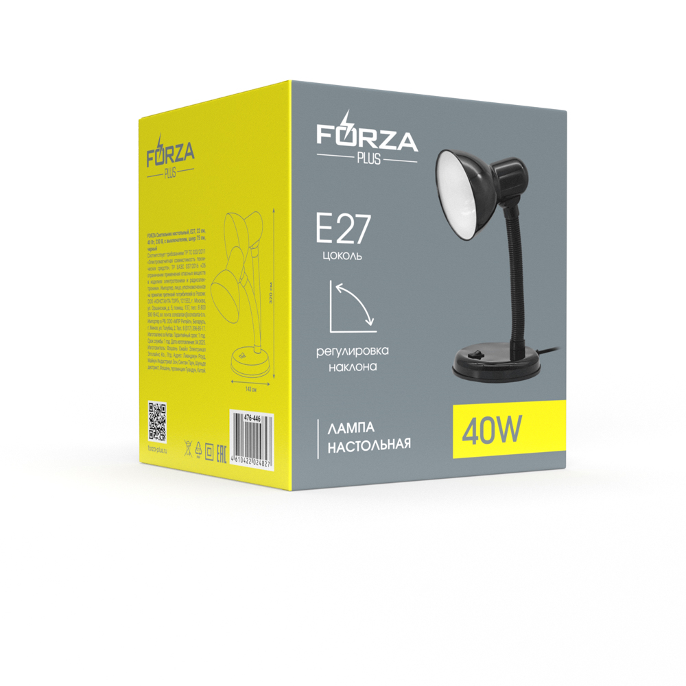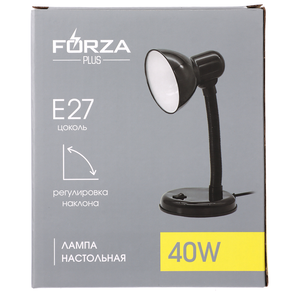 FORZA Лампа настольная, Е27, 28см, 40Вт, 220В, с выключателем, шнур 75 см, черный