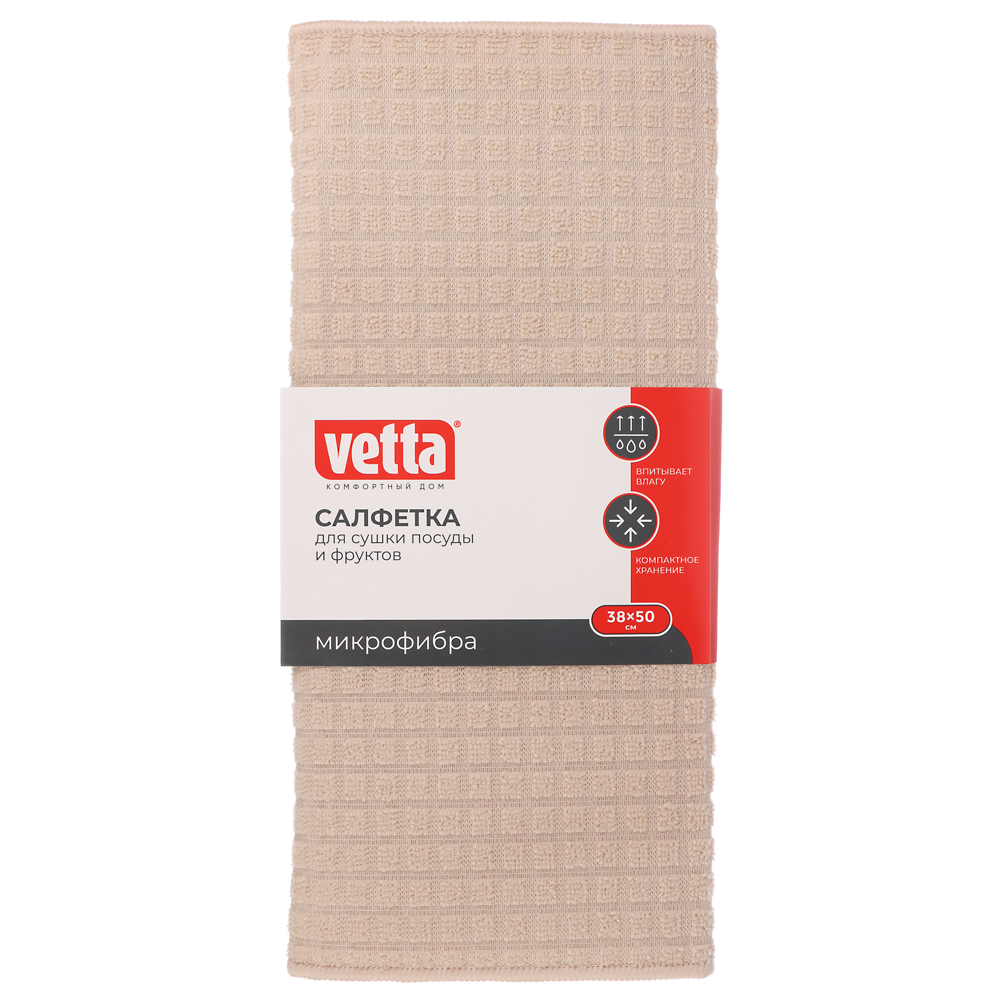 Не хватает пространства для установки большой сушилки для посуды? Не беда! Салфетка для сушки посуды из микрофибры Vetta – отличная альтернатива стационарной сушилке. Салфетка изготовлена из плотной микрофибры, которая отлично впитывает влагу и быстро сохнет, поэтому на ней не успевают размножаться микробы. После использования салфетку следует высушить, а затем ее можно компактно сложить в кухонный ящик. Имеет качественно обработанные края и приятный дизайн. Размер 38x50 см. Плотность 280 г/кв.м