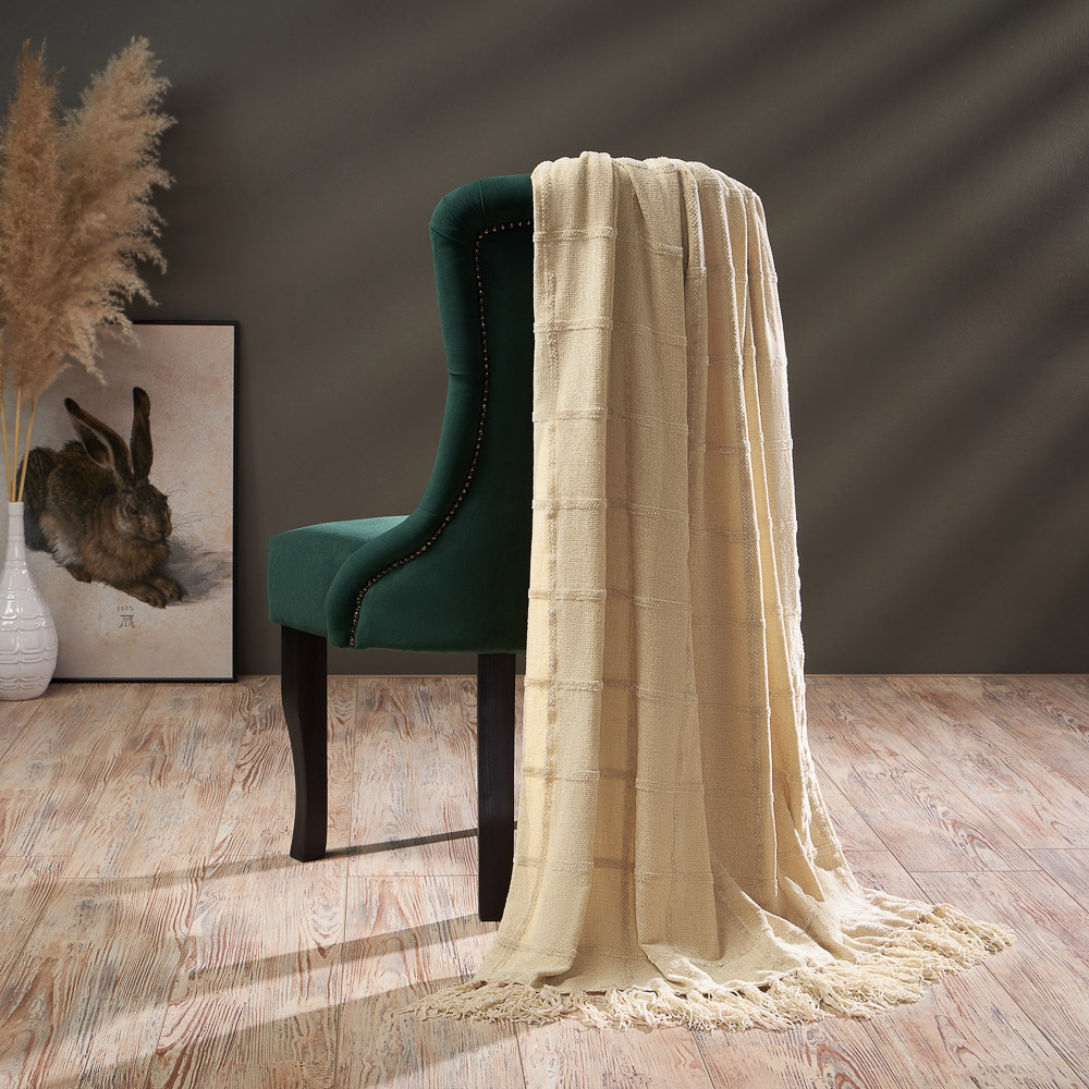 Плед BY Collection из 100% полиэстера в бежевом цвете – это практичный и долговечный текстиль, имеющий приятную бархатистую поверхность. Плед устойчив к растяжению и истиранию, не сминается. Уютный аксессуар можно использовать в качестве накидки на кресло или диван, плед защитит мебельную обивку от загрязнений и одновременно освежит интерьер помещения. Станет чудесным подарком для близких на любой праздник.