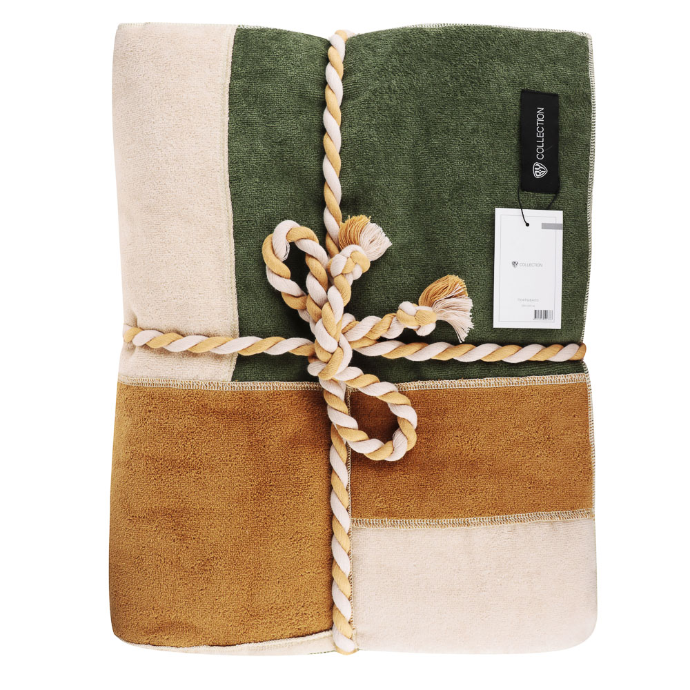 Махровое покрывало BY Collection 200х200 см из 100% хлопка – это качественный и комфортный текстиль для спальни и гостиной. Сочетание сдержанных оттенков: зеленого, бежевого и коричневого смотрится сбалансированно и гармонично и будет актуально для любого интерьера. Материал износостойкий, не линяет, отлично держит форму, не сминается. Покрывало может использоваться для кровати, дивана, кресла, а также в качестве одеяла и накидки на плечи.