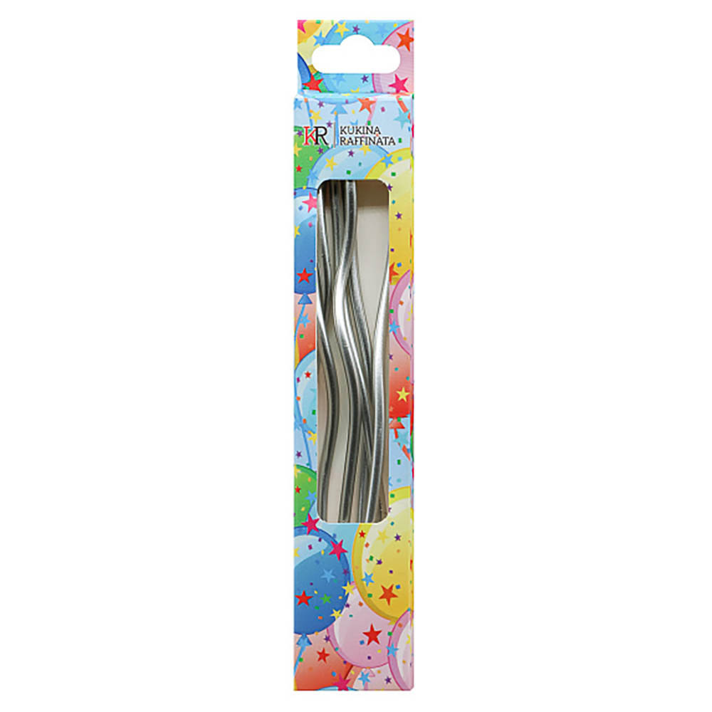 Свечи в торт с подставками 13,5 см "Волна", набор 6шт, серебро