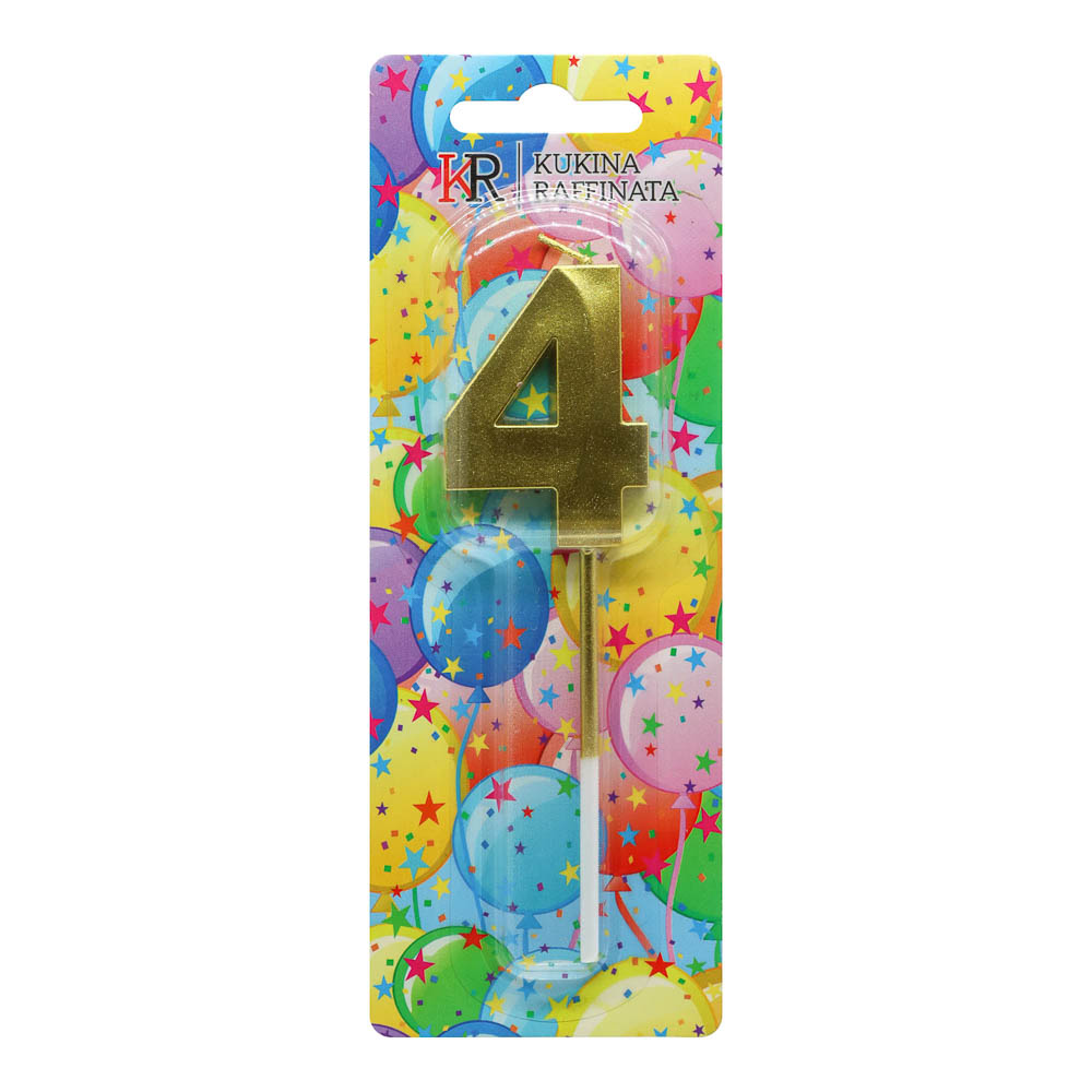 Свеча в торт "Грани", цифра 4, 4,8см, золото