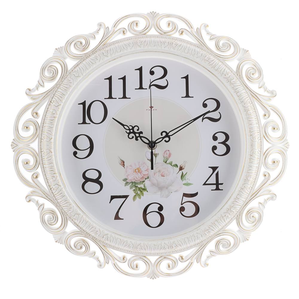 Часы настенные круг ажурный d=40,5см, корпус белый с золотом "Нежные пионы", арт.4126-003