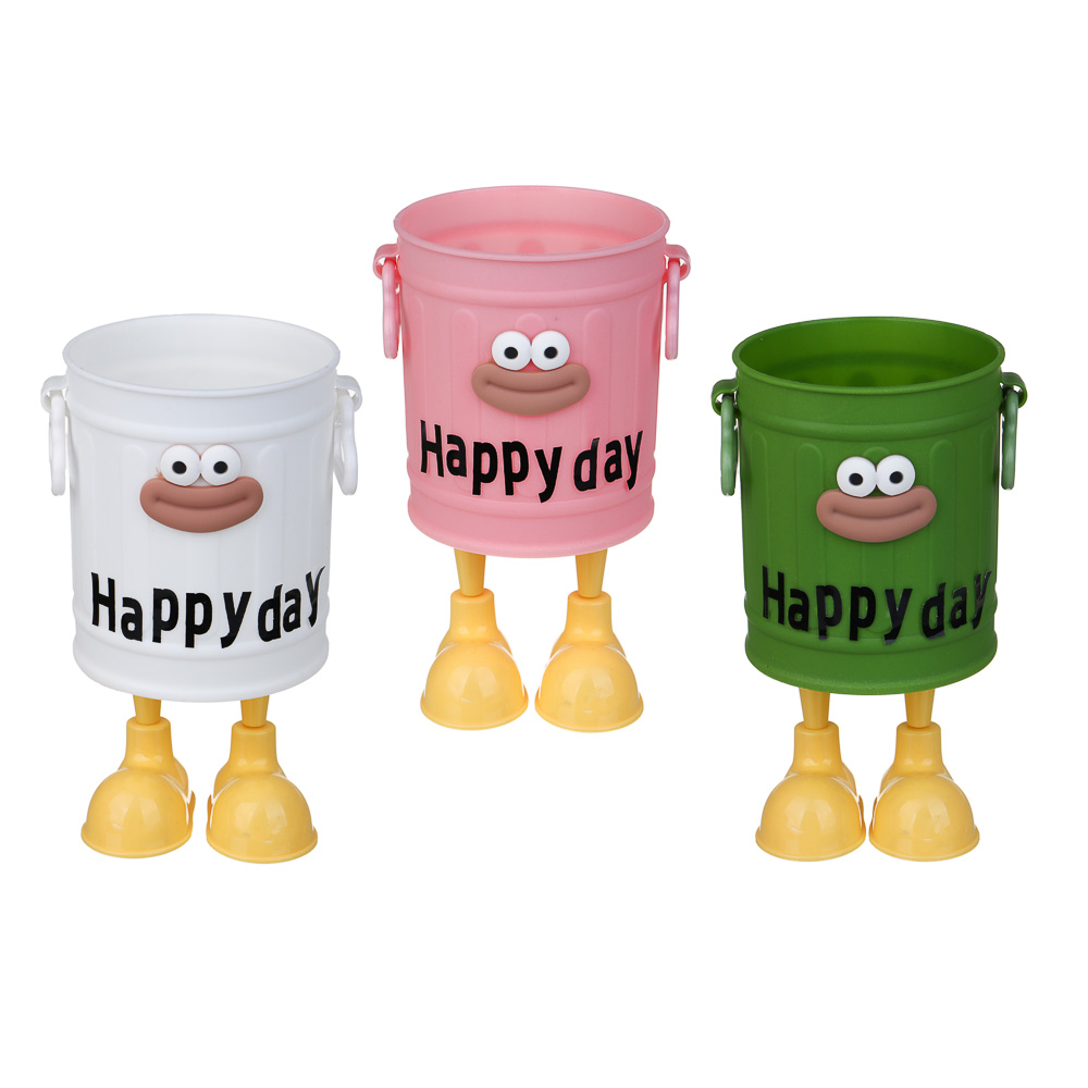 Подставка для ручек и карандашей с ножками, глазами и наклейками, 15x9см, пластик, 3 дизайна