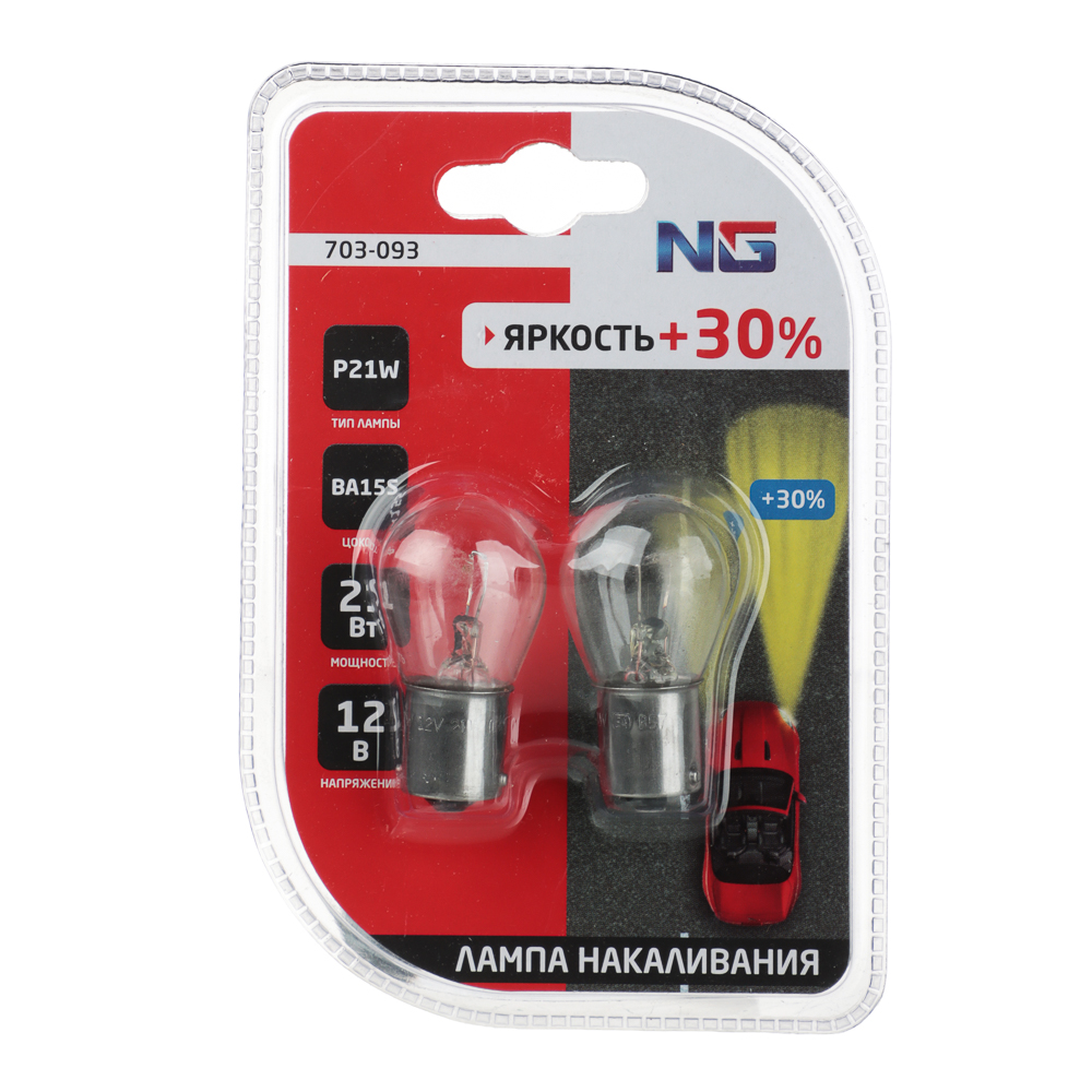NG Лампа накаливания P21W S25, 12В 21Вт, BA15S, 2шт/блистер (Original)