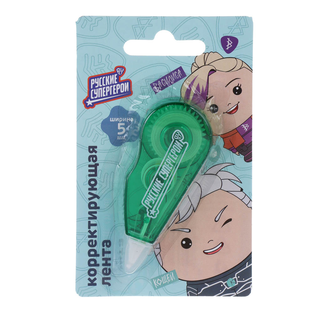 Корректирующая лента BY Русские Супергерои "Кавай", ширина 5 мм. в пластиковом корпусе поможет аккуратно исправить ошибки и замаскировать помарки в тетрадях и конспектах. Легко ложится на лист, не крошится, не размазывается и не рвется. Удобно наносится и не пачкает руки. Позволяет сразу нанести новую запись поверх ленты, не требуя времени на высыхание. Имеет компактный размер, поэтому помещается даже в небольшой пенал или карман сумки. Отличный выбор для школы и офиса.