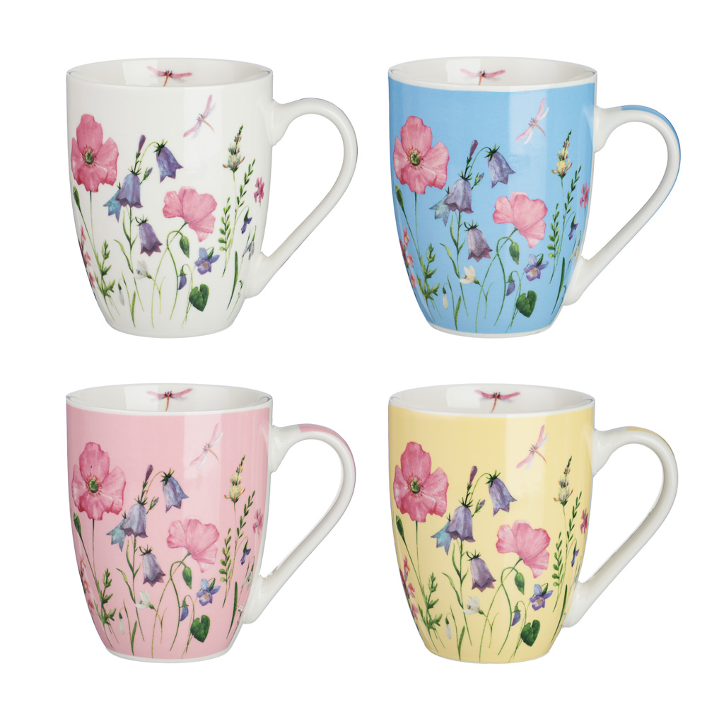 Кружка 350мл, фарфор, "Соцветие", 4 цвета