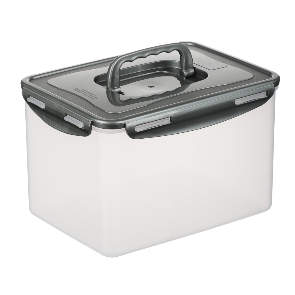 Контейнер герметичный с защелками с ручкой 4,5л, серая крышка, пластик