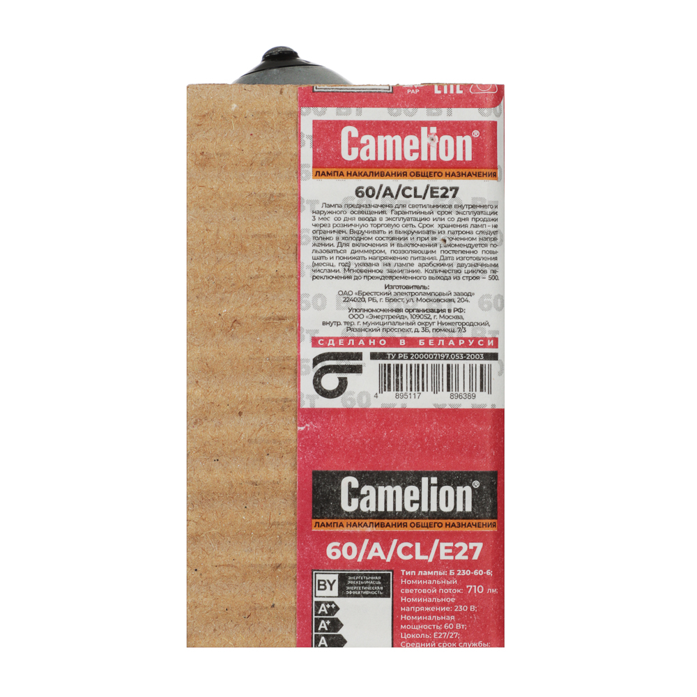 Camelion Лампа накаливания с прозрачной колбой, 60/A/CL/E27/G, ЛОН, ГОФРА, Б230-60-6
