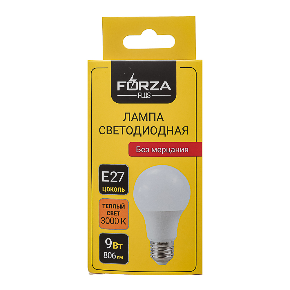 FORZA Лампа светодиодная A60 9 Вт, Е27, 806 Лм, 3000 К, 175-265 В, Ra>80, IRF <5%, 1 год гар.